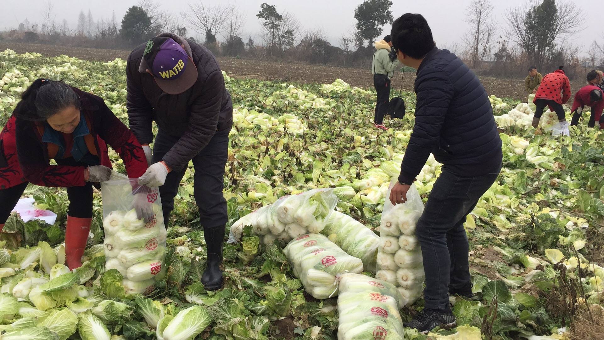 合作電商公司員工協(xié)助菜農(nóng)打包運(yùn)輸娃娃菜
