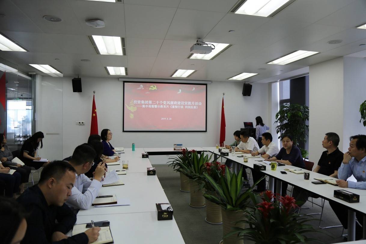按照省社直屬機(jī)關(guān)紀(jì)委統(tǒng)一部署要求,結(jié)合投資集團(tuán)第二十個黨風(fēng)廉政建設(shè)宣教月活動安排,5月20日下午,投資集團(tuán)召開全體黨員大會,組織集中觀看警示教育片《重整行裝 利劍反腐》。投資集團(tuán)黨委書記、董事長、總經(jīng)理嚴(yán)莉敏主持會議,集團(tuán)全體高管、中層以上干部、全體黨員近50人參加會議。